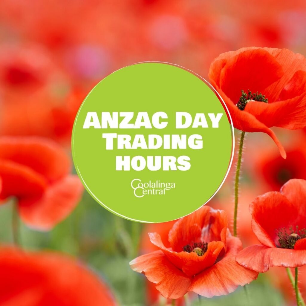 Coolalinga Central’s Trading Hours for ANZAC Day, Saturday 25 April.